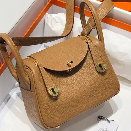 Hermes 에르메스 미니 린디 19 클레망스가죽 브라운 금장