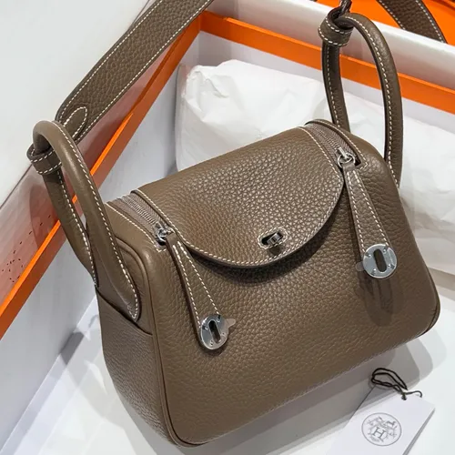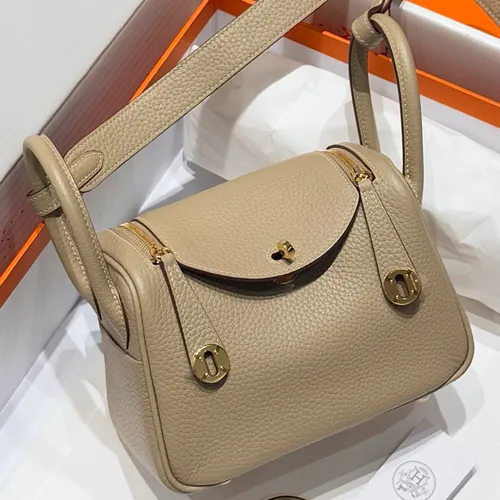 Hermes 에르메스 미니 린디 19 클레망스가죽 다크 베이지 금장