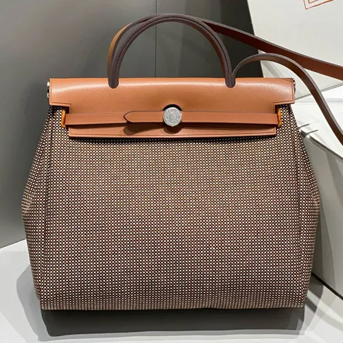 Hermes 에르메스 미니에르 허백 Zip 31CM 브라운 & 레드 은장