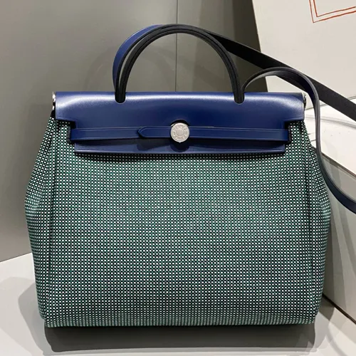 Hermes 에르메스 미니에르 허백 Zip 31CM 네이비 & 그린 은장