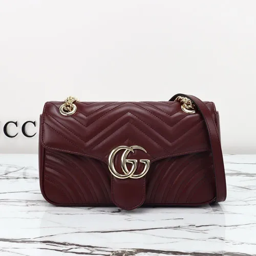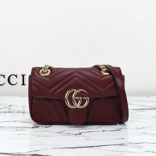GUCCI 구찌 GG 마몬트 미니 체인 숄더 크로스백 버건디