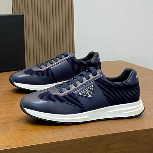 Prada 프라다 남성 네이비 소가죽 콤비 스니커즈