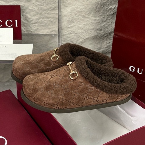 Gucci 구찌 2025 가을겨울 리버스 소가죽 GG 양털 슬리퍼