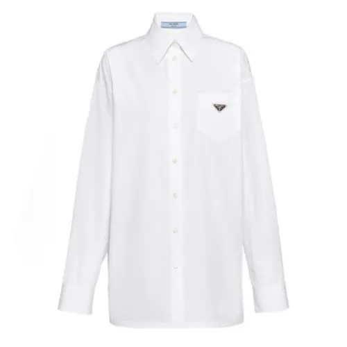 Prada 프라다 남성 프라다 메탈 로고 장식 포플린 셔츠
