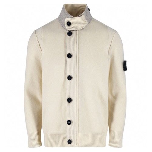 Stone Island 스톤아일랜드 울 하이넥 버튼 가디건 (아이보리/그레이)