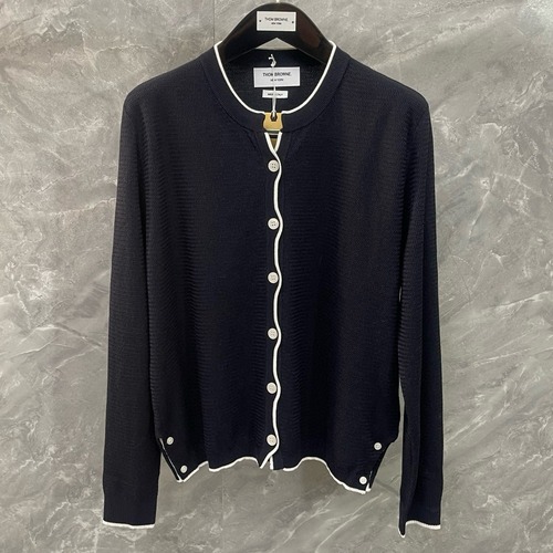 Thom Browne 톰브라운 클래식 배색 라운드넥 니트 가디건