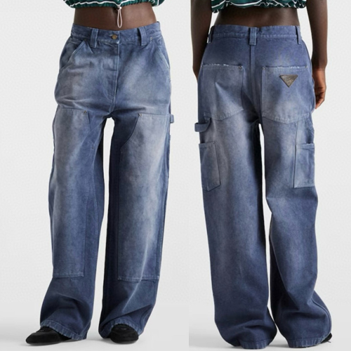 PRADA 프라다 SS25 봄여름 여성 컬렉션 삼각 로고 장식 데님 팬츠