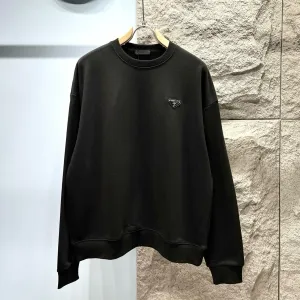 PRADA 프라다 순색 로고 미니 삼각 로고 라운드넥 맨투맨 티셔츠 남성용