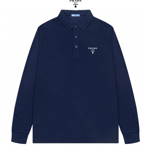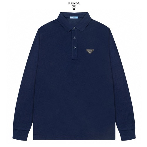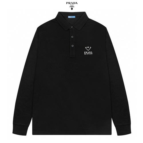 Prada 프라다 남성 고급 면 비즈니스 캐주얼 긴팔 폴로 셔츠