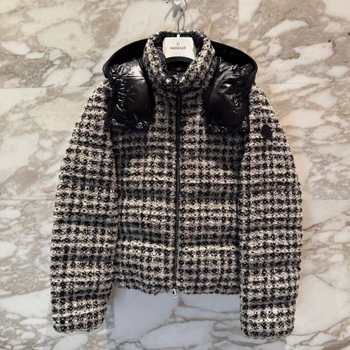 Moncler 몽클레어 2025 신상 탈부착 후드 레드&화이트 하운드투스 트위드 다운 자켓..