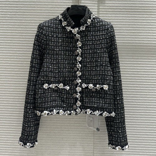Chanel 샤넬 2025 가을·겨울 블랙 트위드 진주 디테일 크롭 재킷
