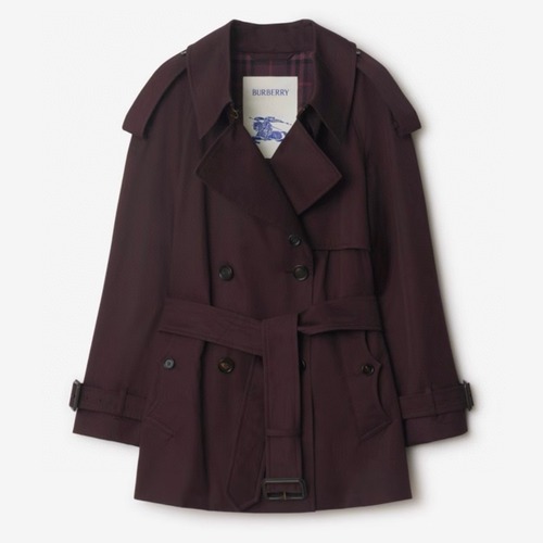 BURBERRY 버버리 버건디 체크 안감 쇼트 트렌치 코트