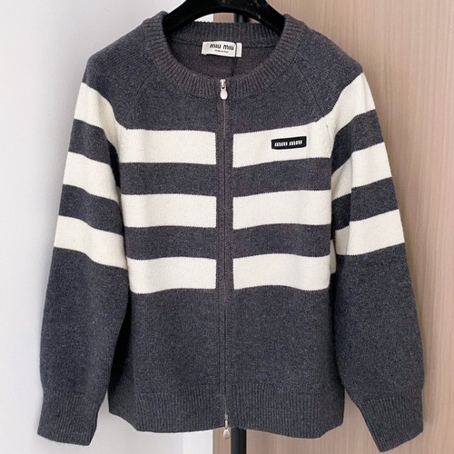 Miu Miu 미우미우 25 신상 로고 스트라이프 집업 가디건