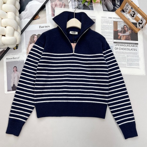 Miu Miu 스트라이프 하프집업 니트 풀오버
