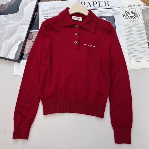 Miu Miu 와인 레드 롱슬리브 울 폴로 니트