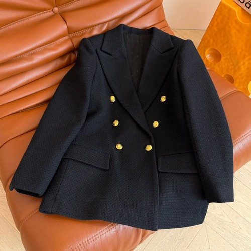 CELINE 셀린느 클래식 블랙 앤 골드 더블버튼 양모 자켓