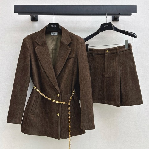 Celine 셀린느 25FW 체인 포인트 수트 세트 (자켓 + 플리츠 스커트)
