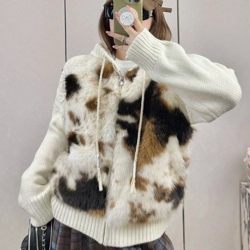 CELINE 셀린느 소가죽 배색 후드 니트 집업