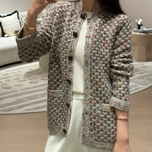 Loro Piana 로로피아나 트위드 라운드넥 울 실크 블렌드 자켓