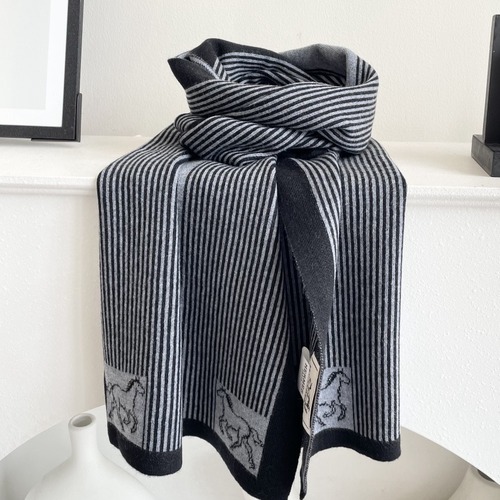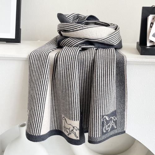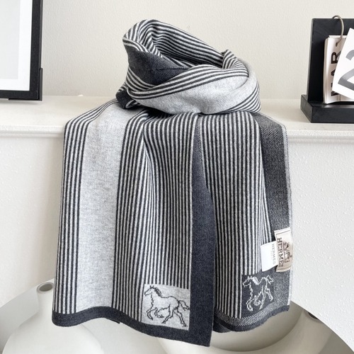 Hermes 에르메스 말 패턴 스트라이프 울 머플러